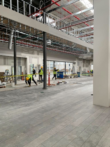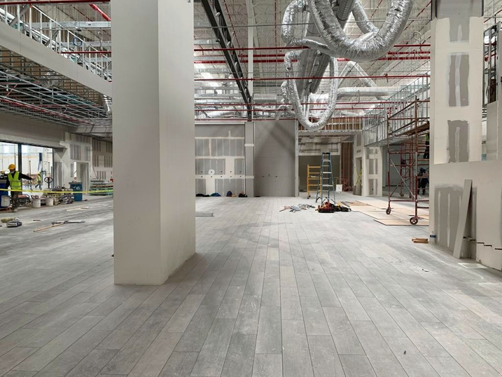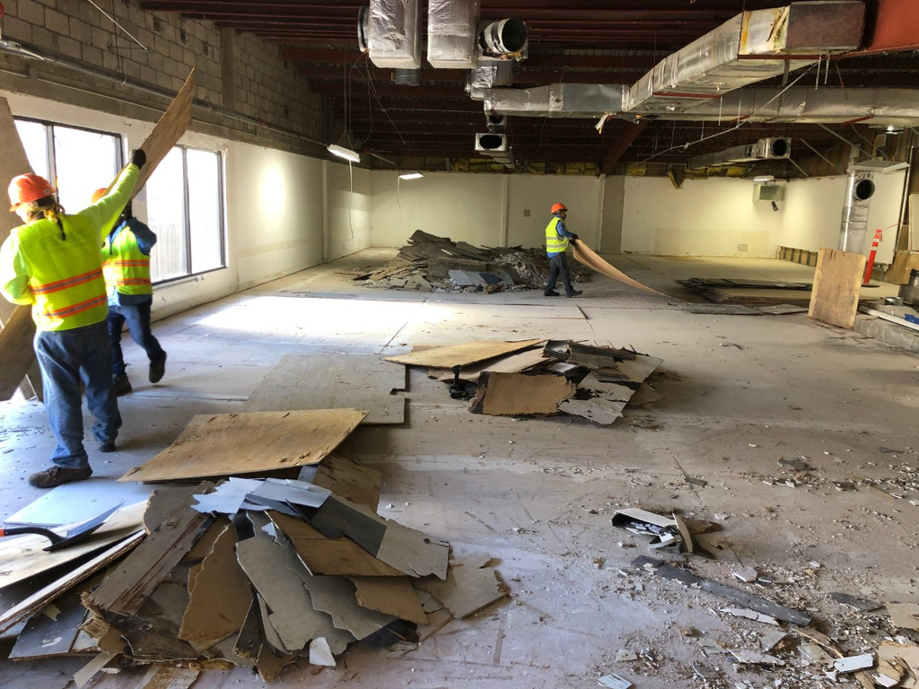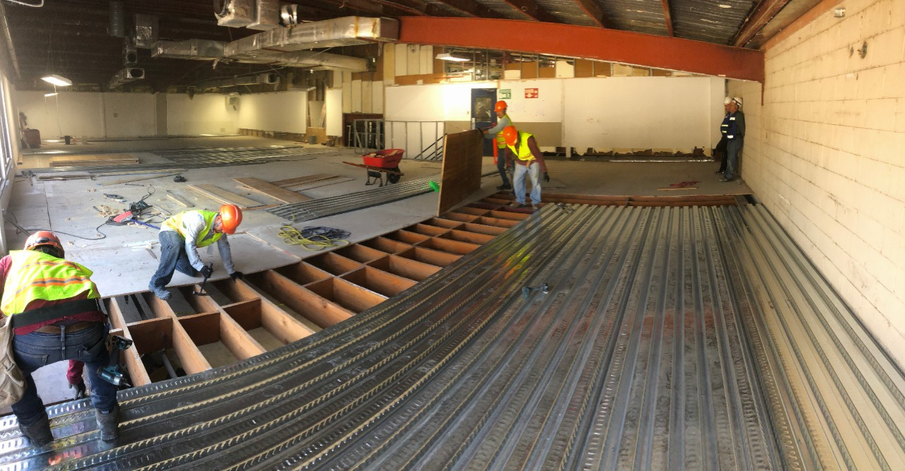 Demolition for new mezzanine with metallic structure and wood, 2019.